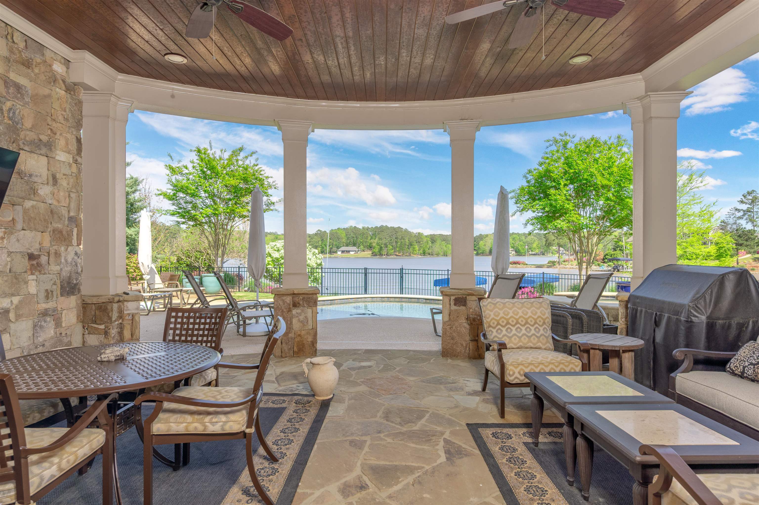 Welcome to this stunning 4-bedroom, 4-bathroom, and 2-half-bath home located on the serene shores of Reynolds Lake Oconee. This luxurious residence offers an unparalleled blend of sophisticated design and natural beauty, providing the perfect retreat for those seeking both relaxation and recreation. As you step inside, you'll be greeted by an expansive open-concept living area, with vaulted ceilings with wood beams and large windows that frame breathtaking views of the lake. The chef’s kitchen is a true centerpiece, featuring top-of-the-line appliances, custom cabinetry, and a spacious island that’s perfect for both meal prep and entertaining. The adjoining dining area and great room are designed for seamless flow, making this space ideal for family gatherings or hosting friends. The primary suite is an oasis in itself, with expansive lake views, a private sitting area, and a luxurious ensuite bath complete with a soaking tub, a walk-in shower, and dual vanities. Each of the additional three bedrooms offers ample space, en-suite bathrooms, and custom finishes, ensuring comfort and privacy for family or guests. For those who love outdoor living, the home boasts multiple terraces and patios with an outdoor fireplace, ideal for enjoying the picturesque sunsets over the water. A private max dock on the lake allows you to easily enjoy your boat and jet skis or simply relaxing by the water. With a total of six bathrooms (including two half baths), there's no shortage of convenience and luxury in this exceptional home. Whether you're enjoying the cozy fireplace indoors or stepping out onto the expansive deck to take in the natural beauty of the lake, this residence provides the perfect balance of tranquility and elegance. Additional features include custom built-ins, a fully equipped laundry room, elevator, wine room for storage of 1800 bottles of wine and a 22.5 KW automatic generator. Oversized garage with a large bedroom and bath completes this beautiful home. Seller makes a Club membership available for Buyer to explore how they can enjoy golf, sporting grounds, tennis, pickleball, fitness, recreational, and culinary amenities befitting a world-class private club.